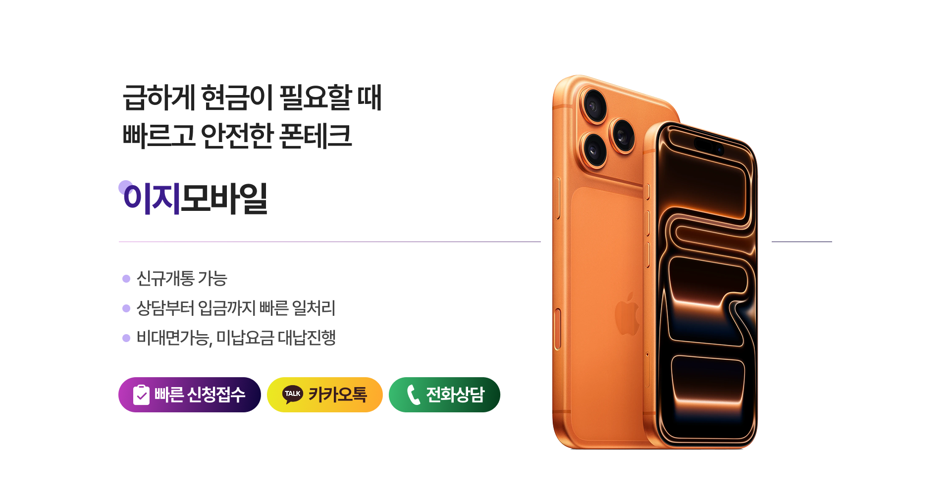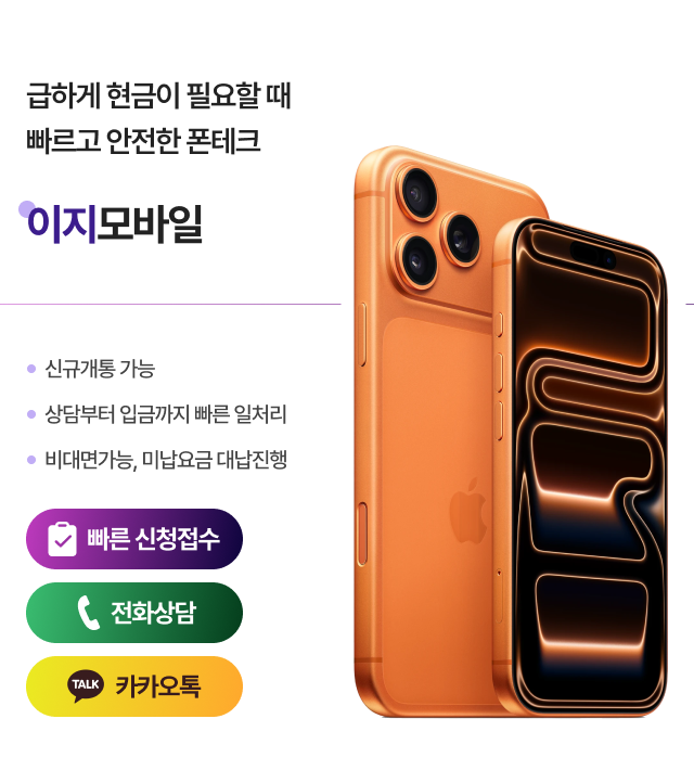 비대면으로 진행했는데 절차가 간단하고 빨랐습니다. 이지모바일 정말 믿을만한 업체인 것 같아요. 추천합니다!